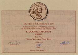 Die feierliche Verleihung des Grand Prix Liszt du Disque 2006 fand am 22. Oktober (195. Geburtstag von Franz Liszt) in der Liszt-Akademie in Budapest statt. Dazu war nicht nur Péter Tóth nach Budapest gereist, sondern auch eine Stockfisch-Delegation, u.a. mit Hans-Jörg Maucksch und Dr. Attila Bardosi, dem Entdecker und Mentor des Pianisten. Die Laudatio hielt Csaba Király, chairman der Liszt-Gesellschaft.