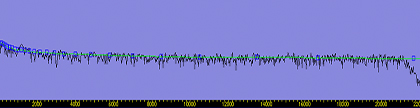 Hüllkurvengrafik der FFT eines typischen Bandrauschens (dB vs. Hz) mit Kennlinie des Rausch-"Fingerabdrucks"